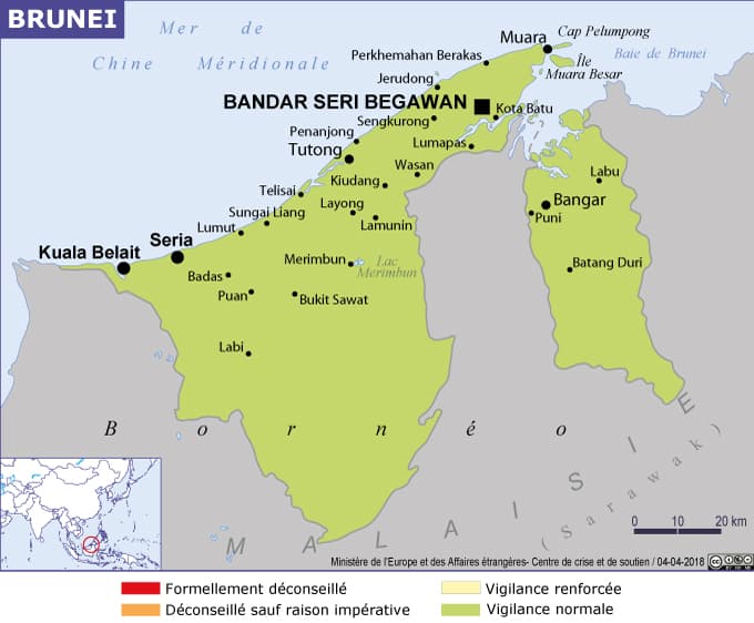 Voici quelques informations utiles pour un touriste au Brunei, tirées du site du gouvernement français (opens in a new tab).