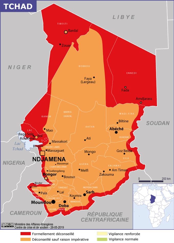 Pour entrer au Tchad, les ressortissants français doivent être en possession d'un visa. Vous pouvez obtenir ce visa auprès de l'ambassade du Tchad en France. Pour plus d'informations sur les formalités d'entrée et de séjour, consultez le site du gouvernement français (opens in a new tab).