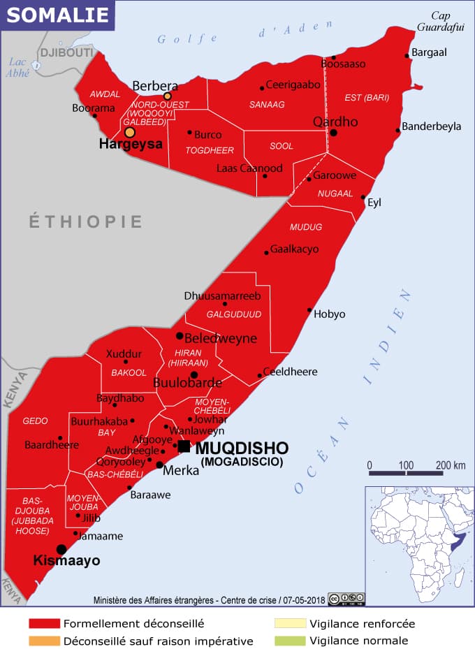 La Somalie est un pays en proie à des conflits internes et à une situation sécuritaire instable. Il est recommandé de faire preuve de prudence et de se tenir informé de l'évolution de la situation sur place.